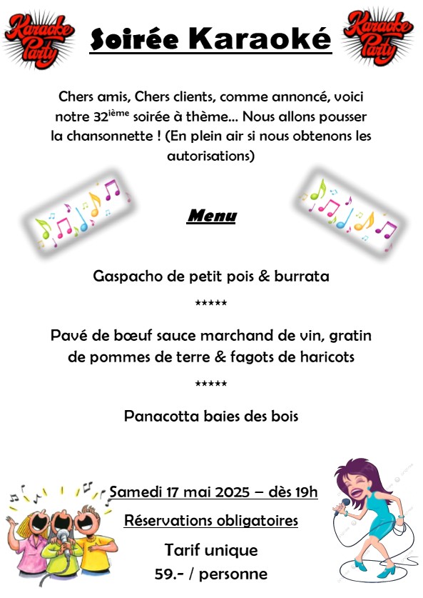 Pour les suivantes : 14/02 Saint Valentin - 28/02 Karoké