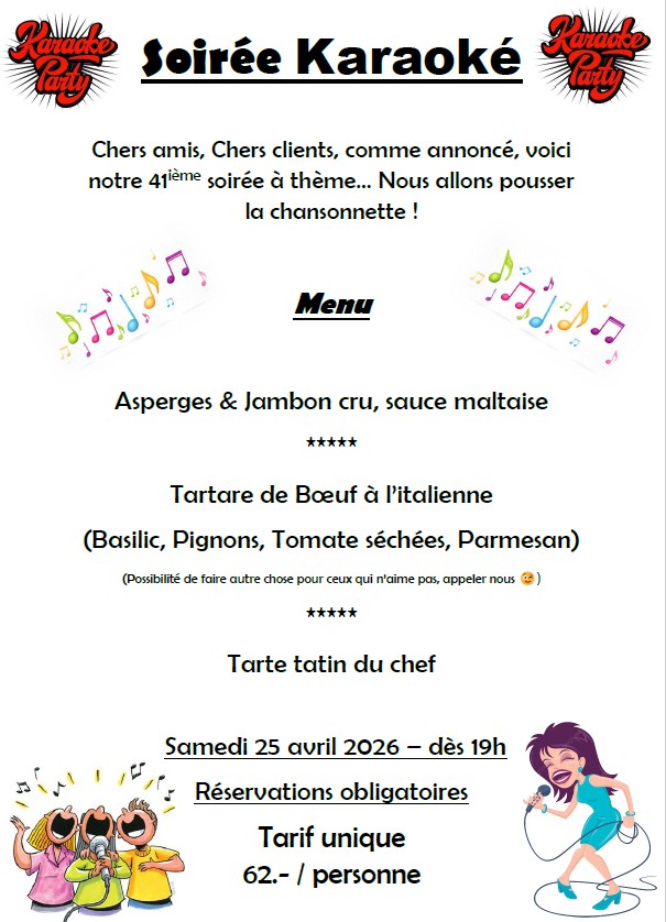 Samedi 25 avril 2026 - Soirée Karaoké ! Avec Bruno aux platines !