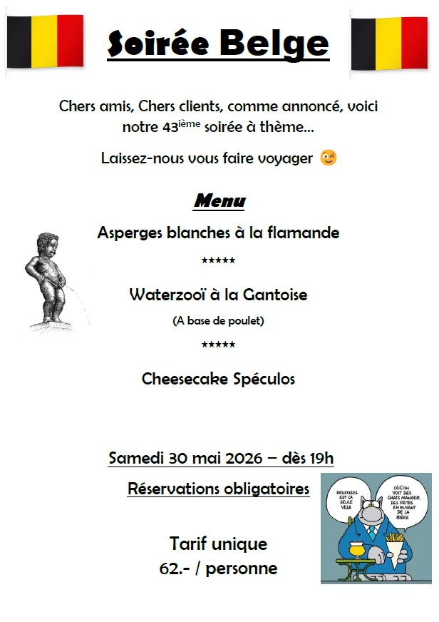 Samedi 30 mai 2026 - Soirée Belge !